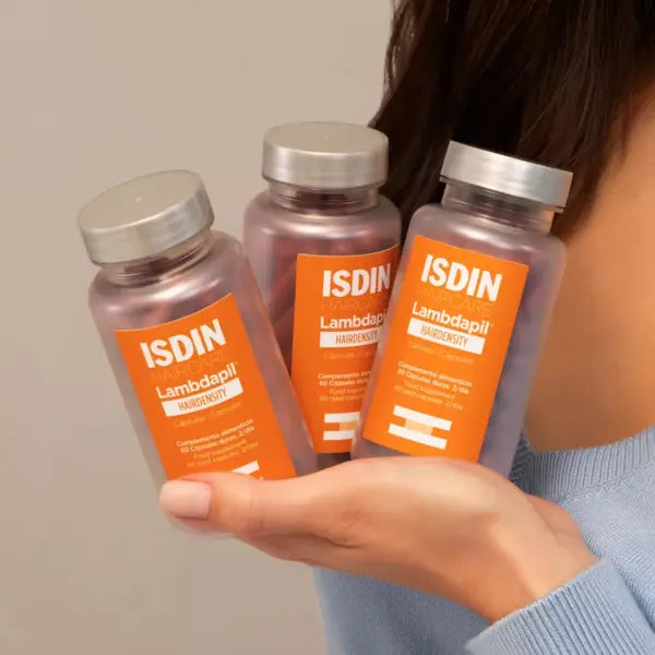 Suplemento alimentar que contribui para a manutenção em condições normais dos cabelos, graças ao seu teor de Biotina, e das unhas, graças ao seu teor de Zinco. Contém Vitamina C, que contribui para a proteção das células contra danos oxidativos. Contribui para a síntese normal das proteínas que são essenciais no cabelo e unhas, graças ao seu conteúdo em Zinco e Vitamina B6, e para a manutenção da pigmentação natural do cabelo, graças ao Cobre. Fórmula reforçada com extrato de Cavalinha (Equisetum arvense), para o bem-estar dos cabelos. Lambdapil® Hairdensity é um SUPLEMENTO ALIMENTAR. Os suplementos alimentares não devem ser usados como substitutos de um regime alimentar variado.