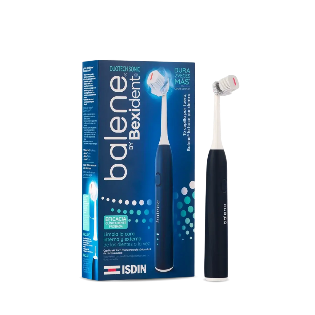 Cuide da sua higiene oral com a Escova de Dentes Balene by Bexident® Duotech Sonic Blue, a escova de dentes elétrica de uso diário que limpa a face interna e externa dos seus dentes em simultâneo. A tecnologia sónica dupla aplica movimentos de alta frequência na superfície do dente, promovendo uma limpeza profunda e eficaz.