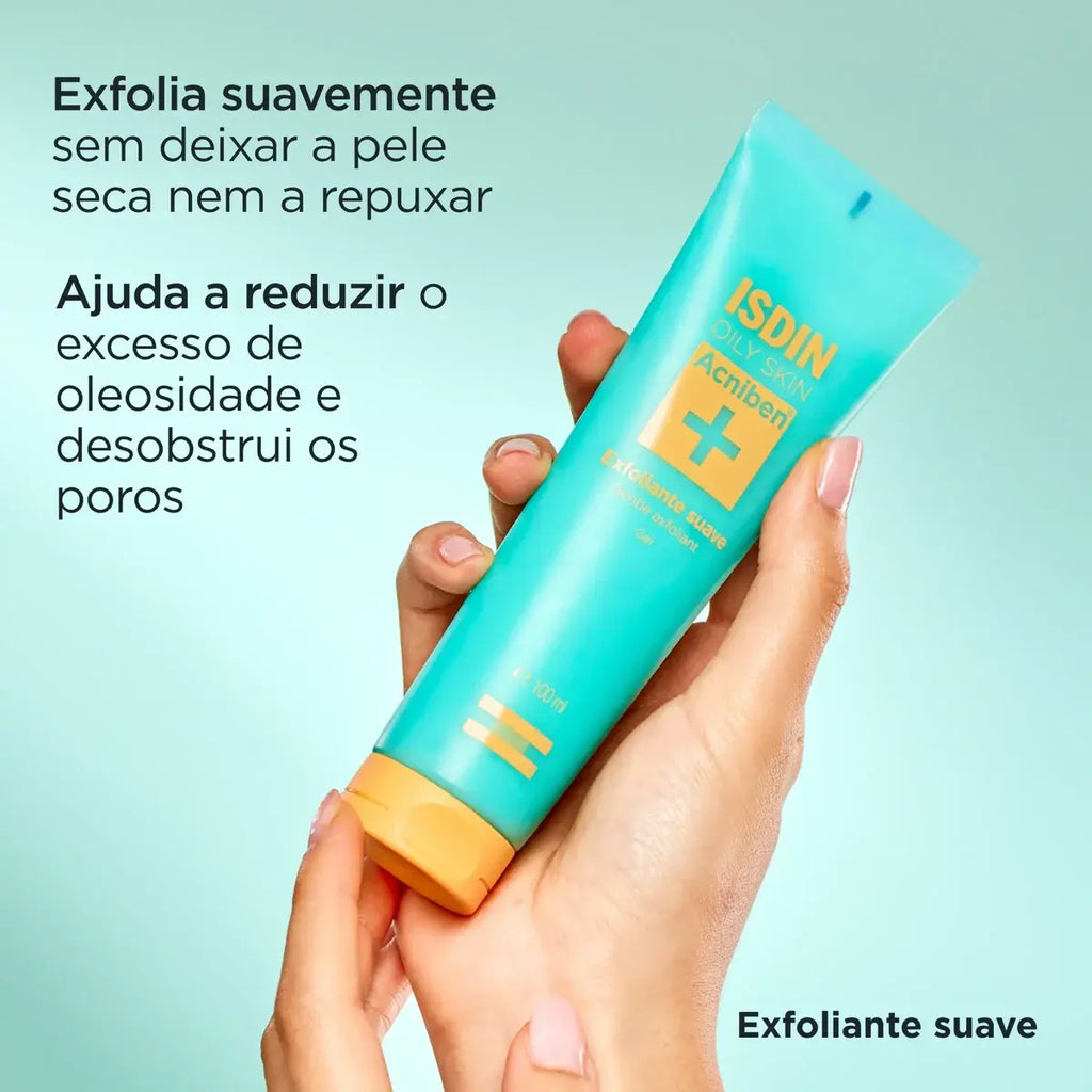 Acniben Exfoliante Suave contém micropartículas de origem 100% natural que esfoliam suavemente e desobstruem os poros, promovendo uma pele uniforme e luminosa.