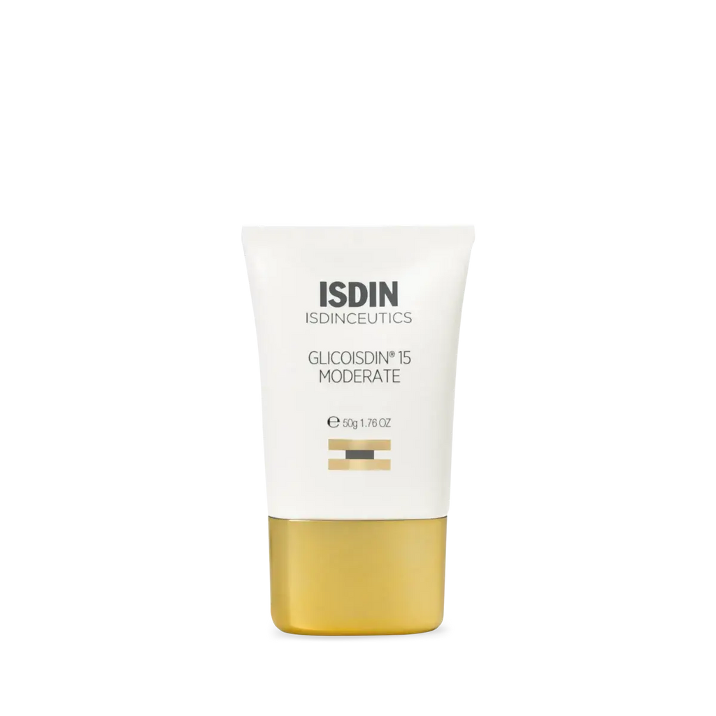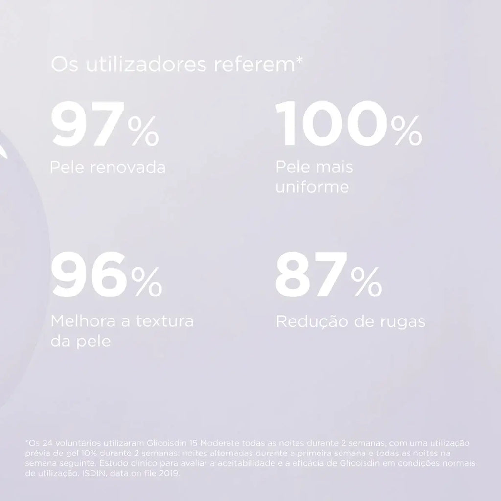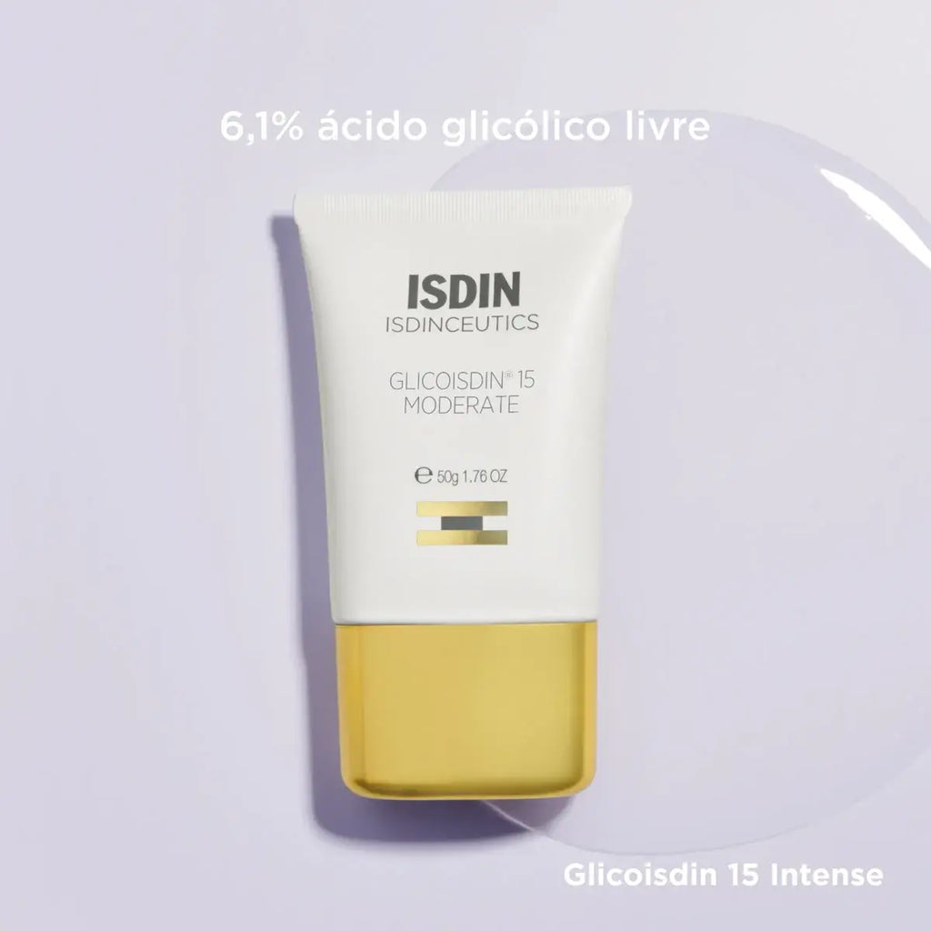 A fórmula do Glicoisdin® 15 Moderate contém 15% de ácido glicólico parcialmente neutralizado, equivalente a 6,1% de glicólico livre. Fornece ação esfoliante, ajuda a suavizar a textura da pele e a estimular o processo de renovação cutânea. Estimula a síntese de colágeno e fornece efeito anti-envelhecimento.